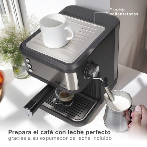 Gracias a la potencia de 850W y sus 20 bares de presión, se consigue un café con cuerpo, cremoso y con un aroma incomparable. Además, su depósito de agua de 1,8 litros permite preparar varias tazas sin necesidad de rellenarlo constantemente.
