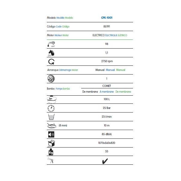 · LONGUITUD MANGUERA (8 mm): 10 m.