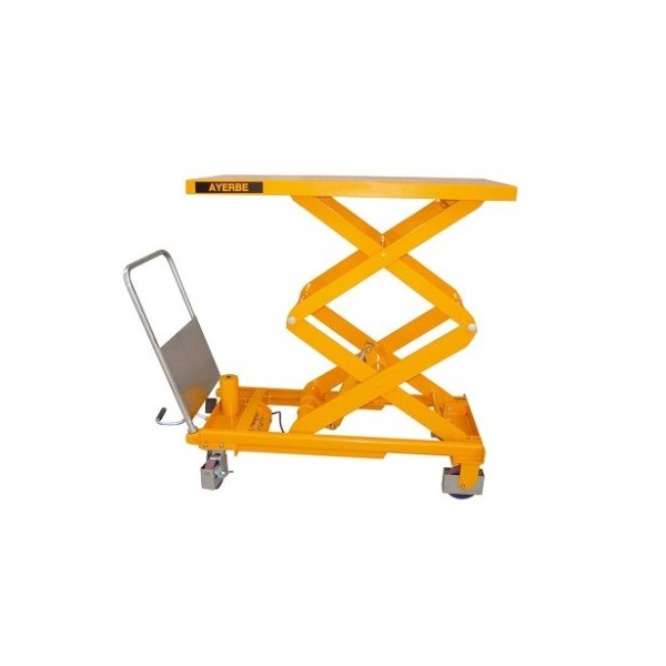Mesa elevadora con diseño robusto para un trabajo intensivo. Gran resistencia y fiabilidad. Peso ligero. Pintura de alta calidad. Sistema de freno por pedal. Sistema de elevación por pedal. Conforme con normativas: CE, GS y TÜV.