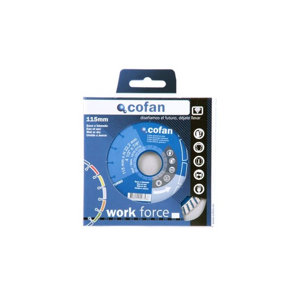 DISCO DIAMANTE "GENERAL OBRA" UNIVERSAL BASE. Corte de todo tipo de material de construcción. Disco segmentado. Aplicaciones: ladrillo, cerámica, azulejo, etc. Excelente corte en seco o húmedo. Grosor diamante: 7mm. Diametro agujero: 22.2mm