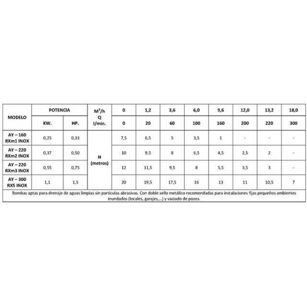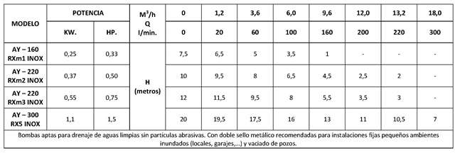 ELECTROBOMBAS SUMERGIBLES INOX SUMERGIBLES AYERBE AY - 220 RXm3 INOX