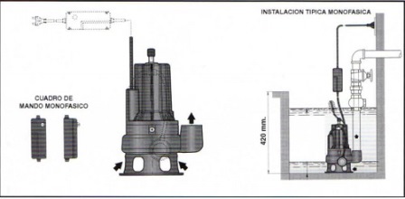 Electrobomba sumergible para: drenaje de aguas cargadas, mezcladas con barro o refluyentes. Conforme con las normas de seguridad y ejecución EN 60034-1 IEC 34-1, CEI 2-3.