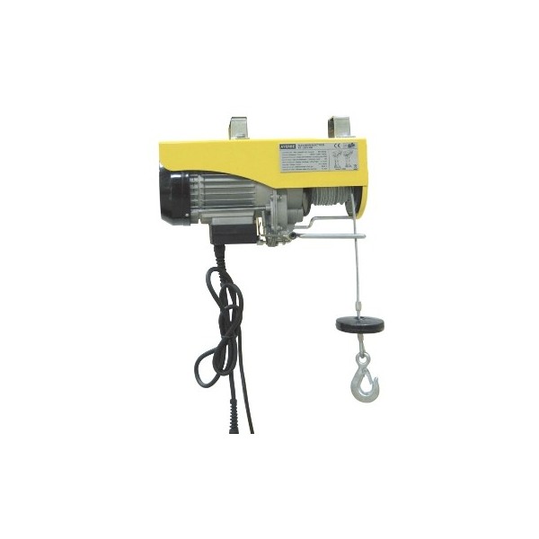 Polipasto Ayerbe AY 200/400 para elevación de cargas de hasta 200 Kg a 12 metros de altura, o, 400 Kg hasta 6 metros. Con una velocidad de elevación de 12 metros por minuto. Conexión a red monofásica de 230 V, desarrollando una potencia de 900W.