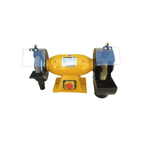 La esmeriladora con cepillo AY 200 PROF CP MN Ayerbe es una maquina profesional especializada en el afilado de otras herramientas de corte como sierras o cuchillas, es ideal para el uso en el hogar o en talleres de carpinteria, su gran potencia le permite conseguir un afilado perfecto y ofrece la posibilidad de rectificar cortes realizados por una sierra y dar forma a piezas de metal.