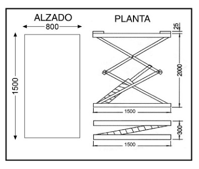 Mesa hidráulica simple, capacidad de carga de hasta 3000 Kg SIMPLE ELECTRO-HIDRÁULICA 3T/2M.