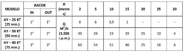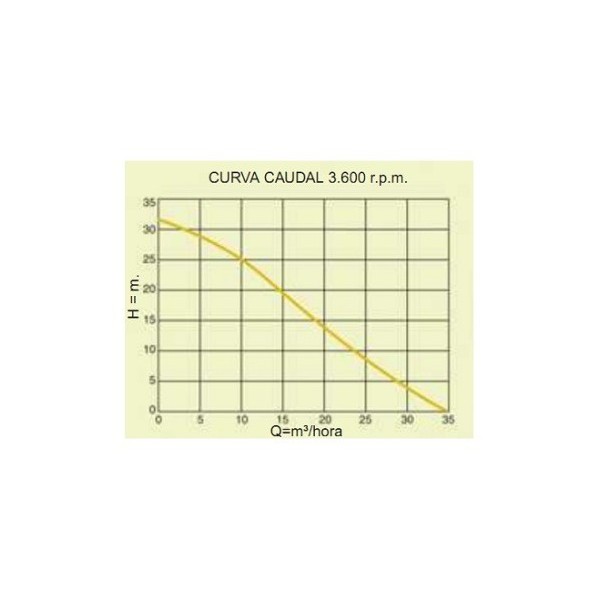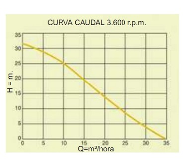 Elevación máxima a 3.600 r.p.m. 30 m. (4.000 L/H).