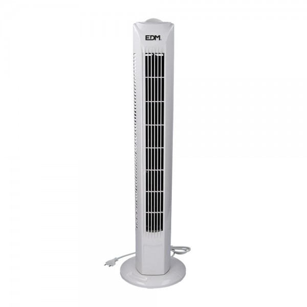 VENTILADOR DE TORRE. COLOR BLANCO. POTENCIA: 45W 3 VELOCIDADES. MEDIDAS: 21x78cm (ancho/alto) CABEZAL AJUSTABLE/OSCILANTE 60° CAUDAL AIRE 1920m³/h SILENCIOSO 220-240V - 50Hz EDM