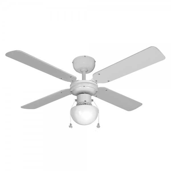 VENTILADOR DE TECHO MODELO CARIBE. COLOR BLANCO. POTENCIA: 50W ASPAS: Ø102cm 3 VELOCIDADES (INTERRUPTOR TIRADOR) CAUDAL DE AIRE 4381m³/h AC-220-240V 50Hz CON LUZ ( 1xE27 MAX. 60W BOMBILLA NO INCLUIDA) - 4 ASPAS IP20 EDM