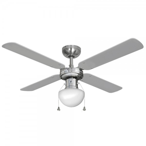 VENTILADOR DE TECHO MODELO CARIBE. COLOR CROMADO. POTENCIA: 50W ASPAS: Ø102cm 3 VELOCIDADES (INTERRUPTOR TIRADOR) CAUDAL DE AIRE 4381m³/h AC-220-240V 50Hz CON LUZ ( 1xE27 MAX. 60W BOMBILLA NO INCLUIDA) - 4 ASPAS IP20 EDM